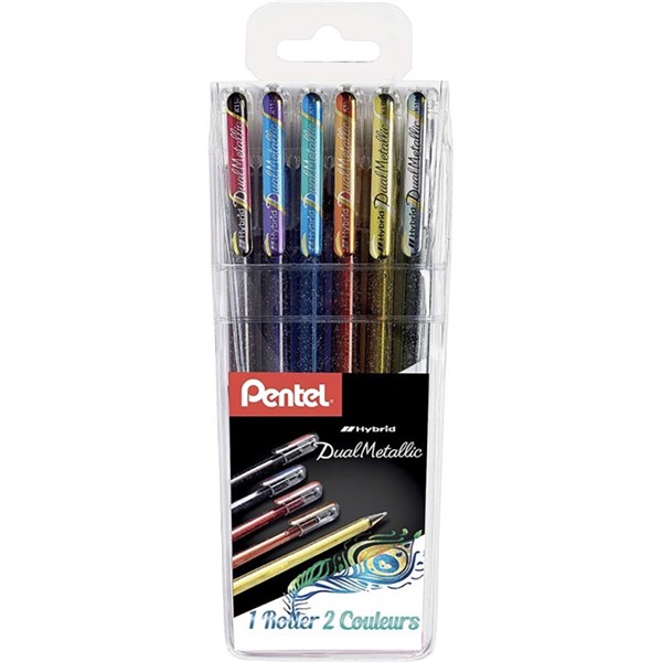 PENTEL K110 HYBRID DUAL METALLIC GEL INK PEN 1.0MM ASSORTED PACK 6
