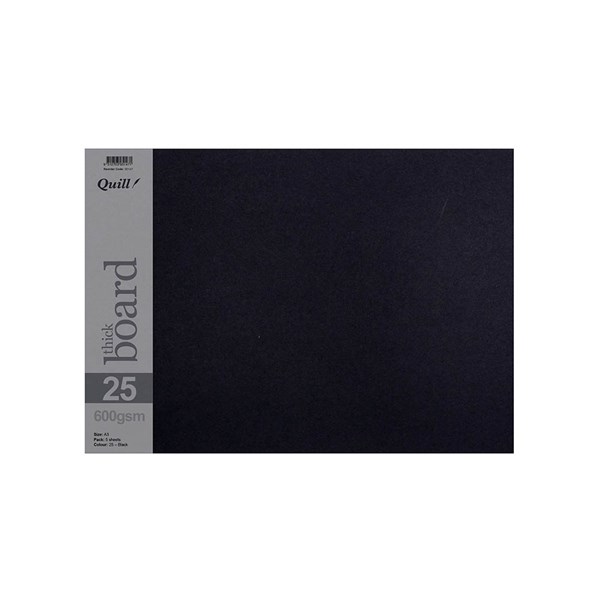 The Quill Surface Board 600gsm A3 Black Pack 5 is a heavy weight board suitable for mounting artwork presentations and creative projects - Its sturdy 600gsm construction provides strong support and durability for display and craft applications