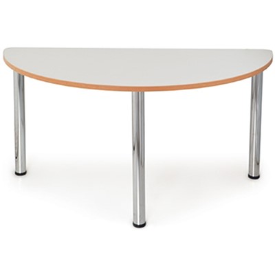 This half round geometric shape table is perfect for creating the optimal layout for your space by combining this table with other geometric shapes in the range. Simply rearrange these tables to suit virtually any conference, meeting or lunch room configuration required - Robust chrome legs add style and durability and can be removed for storage and transport