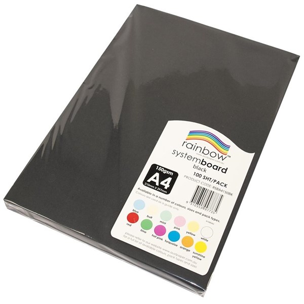 RAINBOW SYSTEM BOARD 150GSM A4 100 SHEETS BLACK