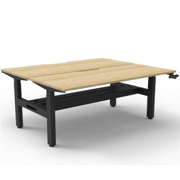 RAPIDLINE BOOST CRANK BACK TO BACK WORKSTATION WITH CABLE TRAY 1500 X 1500 X 705MM NATURAL OAK TOP AND BLACK SATIN FRAME