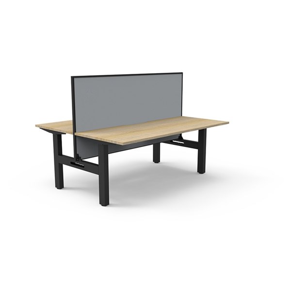 RAPIDLINE BOOST STATIC DOUBLE SIDED WORKSTATION WITH SCREEN 1500MM NATURAL OAK TOP / BLACK FRAME / GREY SCREEN