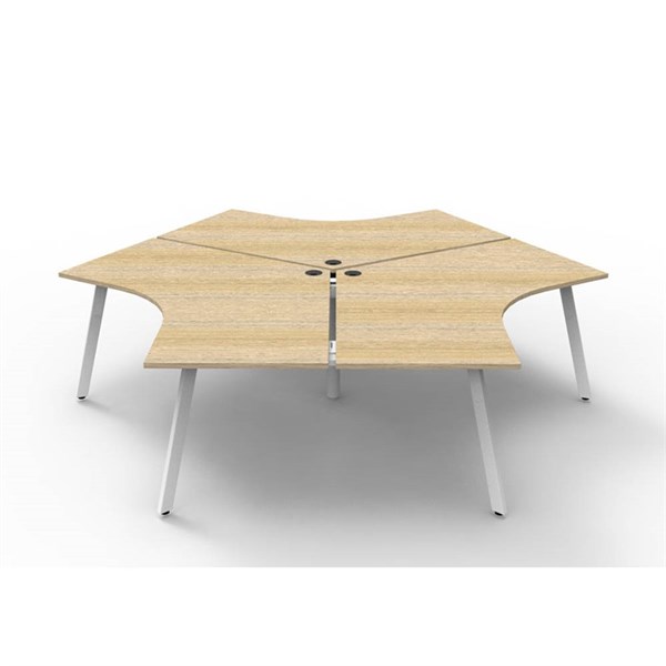 RAPIDLINE DELUXE INFINITY 120 DEGREE WORKSTATION ETERNITY LEG 3 PERSON 2866W X 730MM NATURAL OAK TOP AND WHITE P/C FRAME