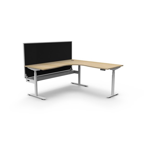 RAPIDLINE HALO PLUS CORNER WORKSTATION WITH SCREEN AND CABLE TRAY 1800 X 1800MM NATURAL OAK TOP / WHITE FRAME / BLACK SCREEN
