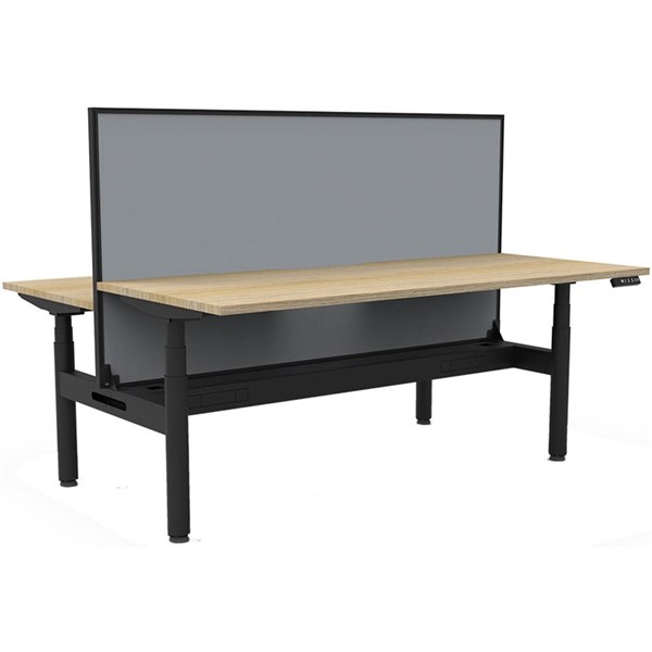 RAPIDLINE HALO PLUS DOUBLE SIDED WORKSTATION WITH SCREEN AND CABLE TRAY 1200MM NATURAL OAK TOP / BLACK FRAME / GREY SCREEN