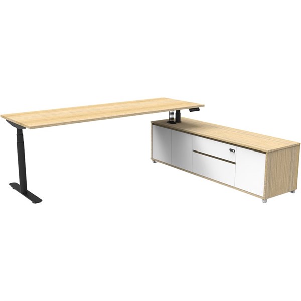 - The integrated side cabinet provides ample storage with drawers and cupboards, enhancing workspace organisation and keeping your essentials within easy reach