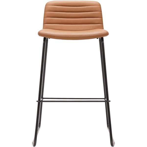 • Featuring a comfortable leather seat with ribbed stitching detail and a sturdy powder-coated sled base, this stool offers both style and support