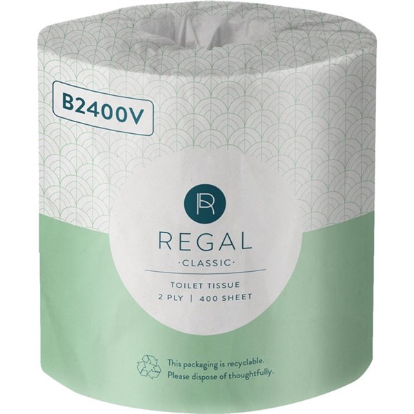 REGAL GREEN-N-SAVE TOILET ROLL WRAPPED 2-PLY 400 SHEET WHITE