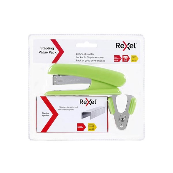 REXEL STAPLER SET VALUE PACK LIME