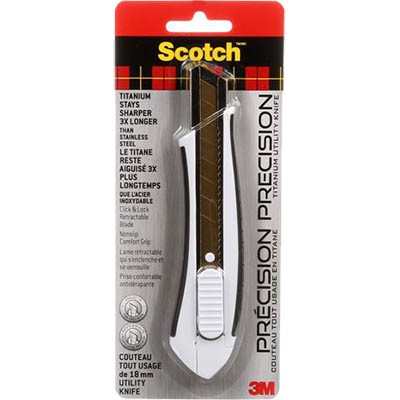Scotch Titanium Utility Knife - Ideal for home, office, or DIY projects. These superior titanium coated blades are great for cutting thick materials including cardboard, foam board, plastic, rope and more