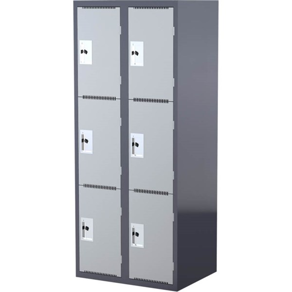 STEELCO SCHOOL HEAVY DUTY LOCKER 3 DOOR BANK OF 2 380MM DARK/LIGHT GREY
