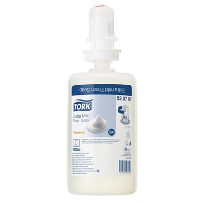 TORK 520701 S4 FOAMING HAND SOAP EXTRA MILD PERFUME AND COLOUR FREE CARTRIDGE 1 LITRE