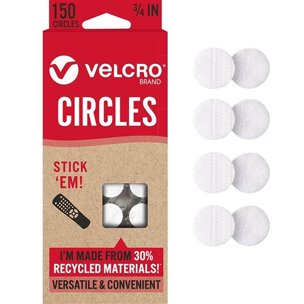 VELCRO ECO COLLECTION STICK'EM CIRCLES 19MM WHITE PACK 150